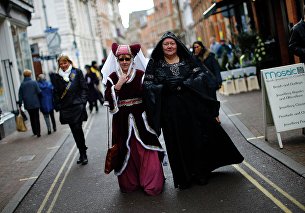 Women in fancy dress after the ceremony of reburial of King Richard III in Leicester